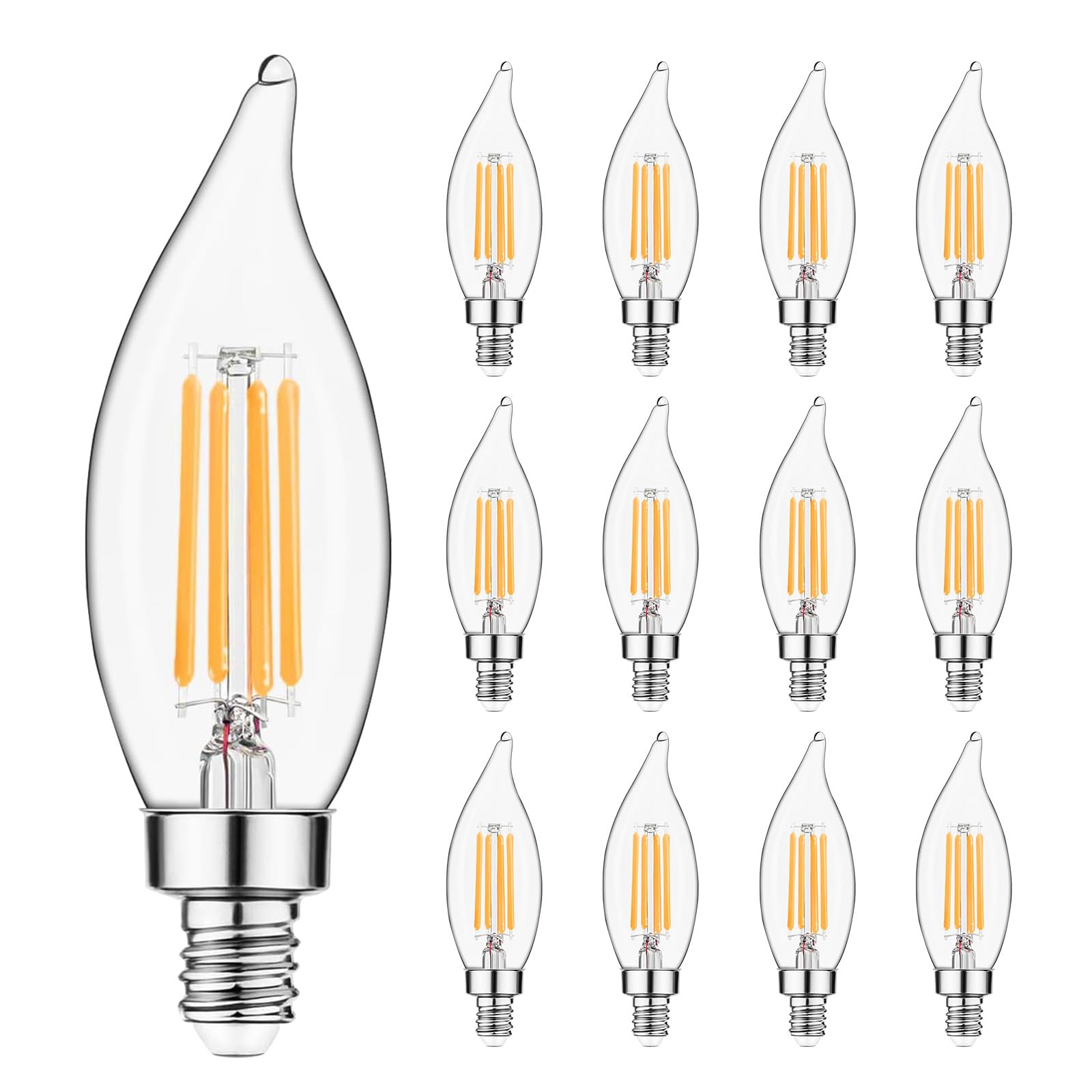 - Decorative flame-tip look: With its graceful CA10 flame shape and clear glass design, this candelabra bulb enhances the charm of any chandelier or sconce, blending timeless beauty with modern LED performance.