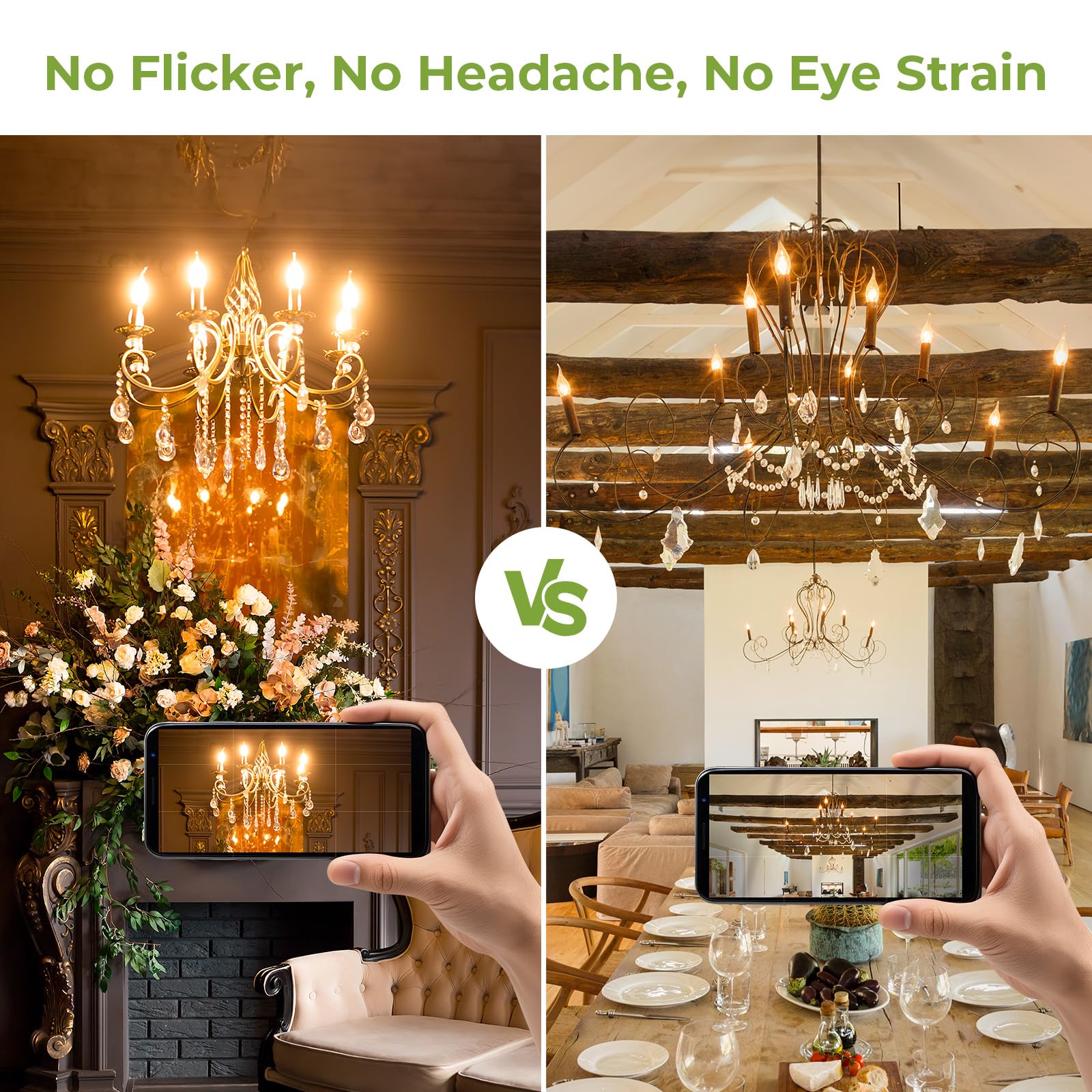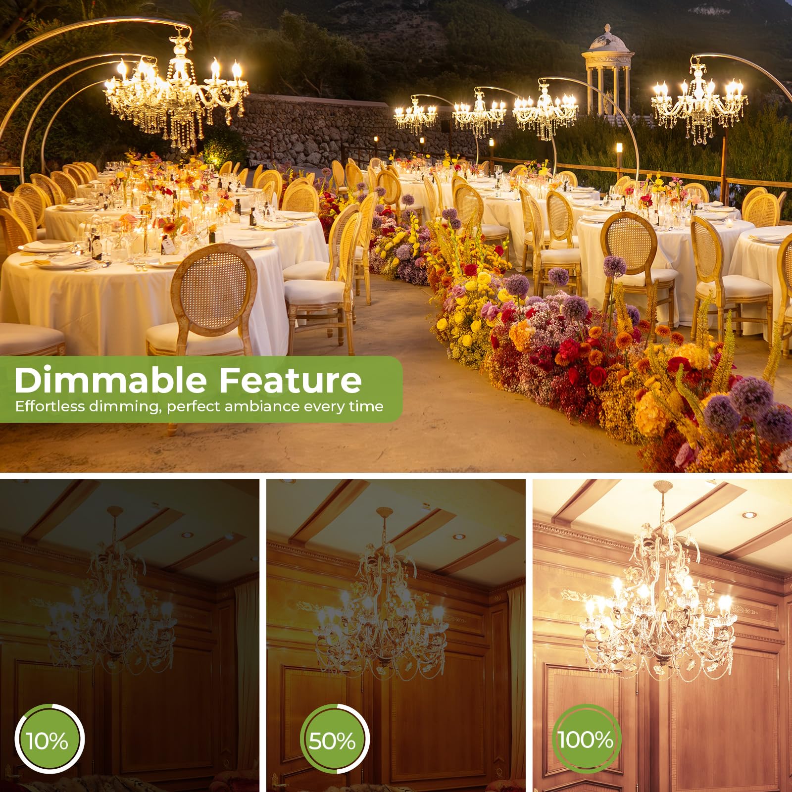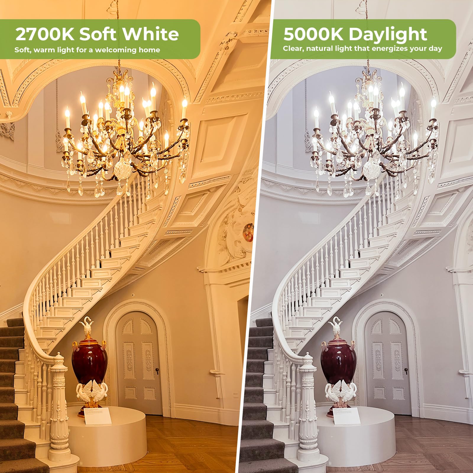 - Inviting warm glow: The 2700K warm white light creates a welcoming atmosphere, ideal for cozy evenings, romantic dinners, or elegant home décor. Perfect for dining rooms, living spaces, and decorative chandeliers.
